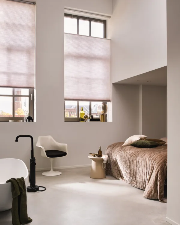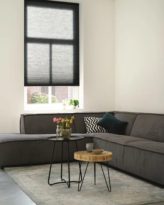 Stel je voor: je hebt de volledige controle over hoeveel licht je woonkamer binnenkomt, terwijl nieuwsgierige blikken buiten blijven. Klinkt perfect, toch? Met Duette® shades of plisségordijnen bepaal je de hoogte van de stof zoals jij het wilt—van boven, van onder of zelfs beide! Heb je liever jaloezieën? Dan stel je de lamellen eenvoudig in voor de perfecte sfeer. Het resultaat? Een gezellige ruimte met veel privacy en altijd in de juiste lichtsetting!