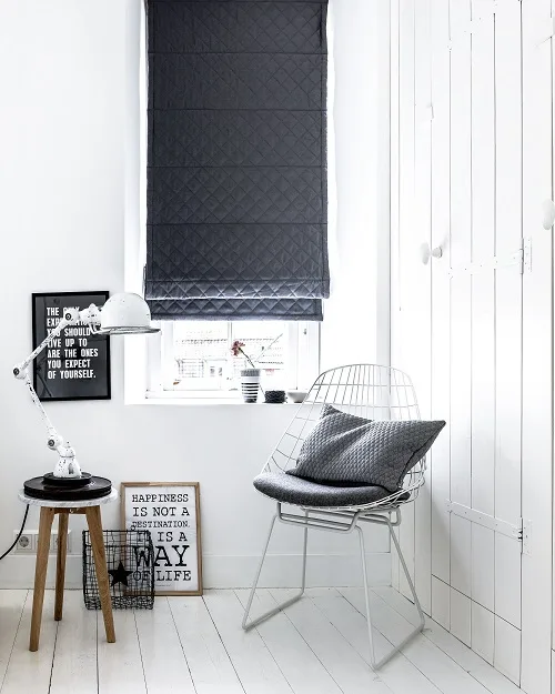 La plupart des stores romains peuvent être commandés par une ficelle ou une chaîne. Vous n'en voulez pas parce que vous avez de jeunes enfants qui courent dans la maison et qui s'accrochent aux ficelles ?
