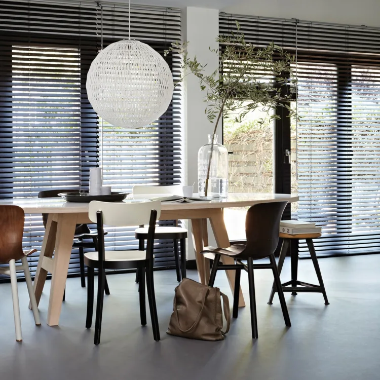 Les stores vénitiens horizontaux offrent un confort fonctionnel avec beaucoup d’intimité. Vous conservez une vue dégagée vers l’extérieur, mais il y a peu ou pas de vis-à-vis. En modifiant la position des lamelles, vous choisissez vous-même la quantité de lumière que vous laissez entrer. Nous avons un large choix de motifs et de largeurs de lamelles. Ainsi, vous trouverez un store vénitien adapté à chaque intérieur, entièrement sur mesure. Vous pouvez même monter nos stores vénitiens sur des fenêtres inclinées.