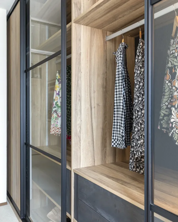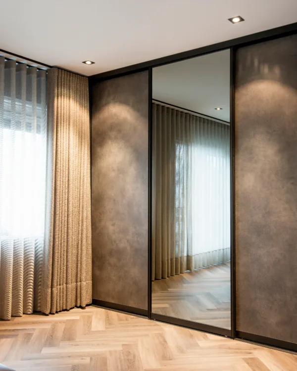 Bij Aanhuis.be maken we je schuifdeurkast op maat. Er zijn talloze materialen, afwerkingen en extra opties waar je uit kan kiezen. Denk aan schuifdeuren met glas of verlichting onder de planken, etc. Hierdoor hebben wij altijd een kast die aansluit bij jouw interieurstijl. En omdat onze schuifdeurkasten op maat worden gemaakt, sluiten ze altijd aan bij je ruimte, maar ook bij jouw wensen en behoeften.