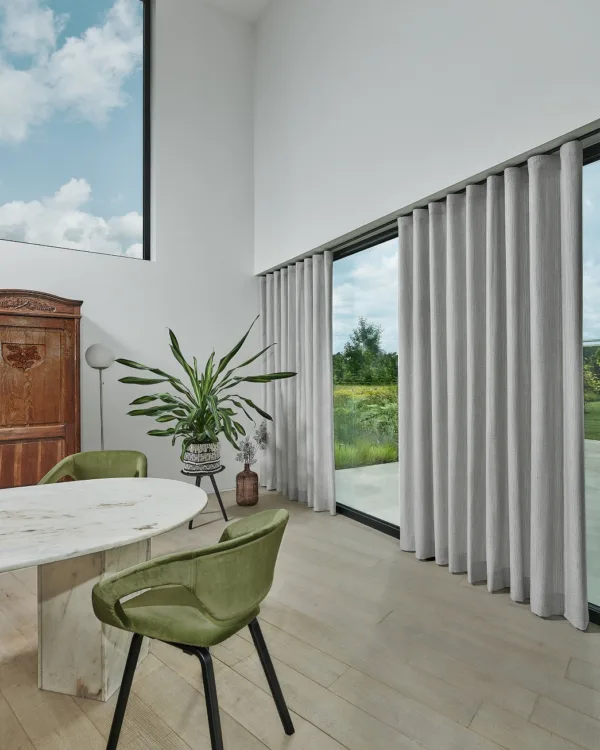 Pour choisir le tissu ou la couleur des rideaux, il faut tenir compte de la quantité de lumière dont vous avez besoin ou que vous souhaitez avoir dans la pièce. Chez Aanhuis.be, nous proposons des rideaux plus épais, également appelés rideaux occultants. Ils sont idéaux pour la chambre à coucher afin de la rendre plus sombre. Nous avons également des entre-deux et des rideaux à filet. Avec les inbetweens, le tissu est semi-transparent. Vous ne pouvez pas voir clairement à travers, ce qui est possible avec les rideaux à mailles. Les inbetweens sont parfaits pour votre salon. Ils vous offrent toujours l'atmosphère, la chaleur et l'intimité dont vous avez besoin. Les rideaux en filet sont magnifiques en combinaison avec la décoration des fenêtres.