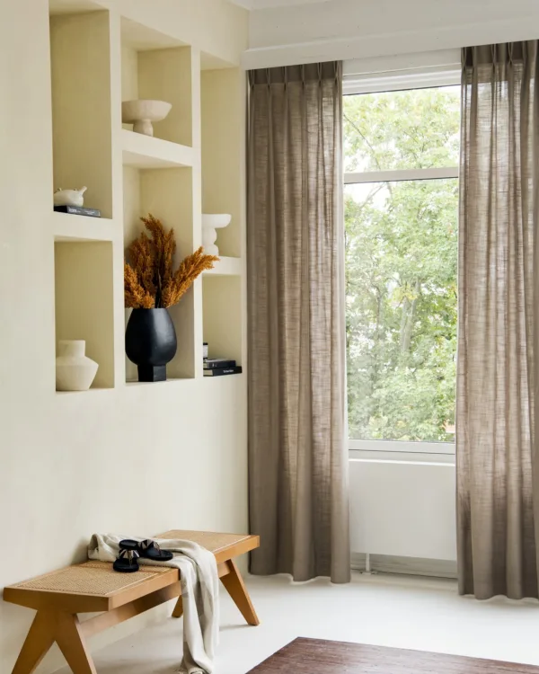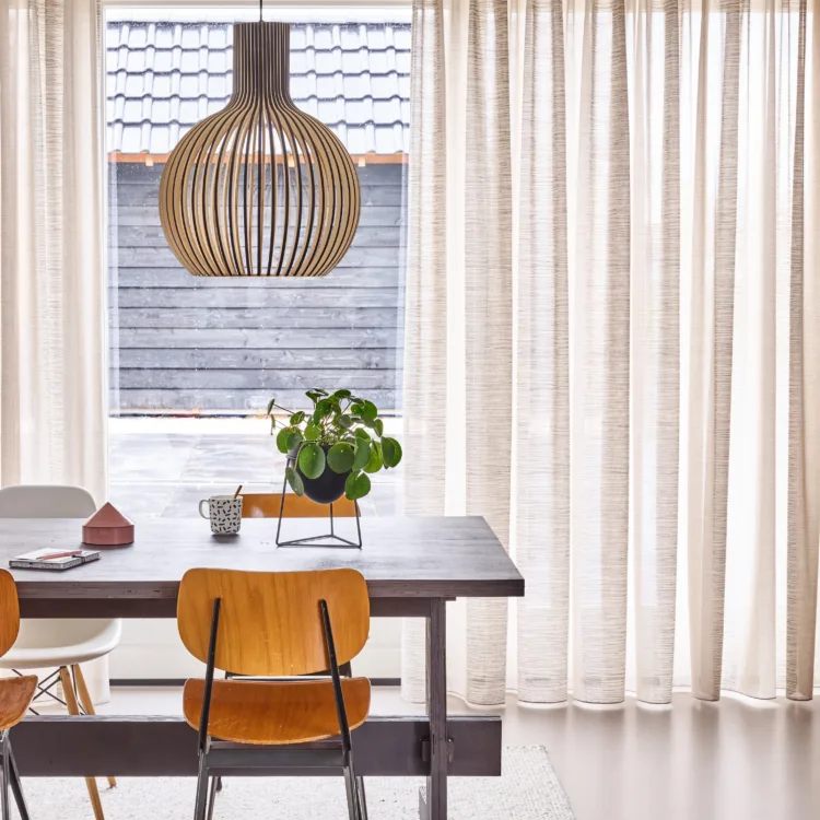 Pour choisir le tissu ou la couleur des rideaux, il faut tenir compte de la quantité de lumière dont vous avez besoin ou que vous souhaitez avoir dans la pièce. Chez Aanhuis.be, nous proposons des rideaux plus épais, également appelés rideaux occultants. Ils sont idéaux pour la chambre à coucher afin de la rendre plus sombre. Nous avons également des entre-deux et des rideaux à filet. Avec les inbetweens, le tissu est semi-transparent. Vous ne pouvez pas voir clairement à travers, ce qui est possible avec les rideaux à mailles. Les inbetweens sont parfaits pour votre salon. Ils vous offrent toujours l'atmosphère, la chaleur et l'intimité dont vous avez besoin. Les rideaux en filet sont magnifiques en combinaison avec la décoration des fenêtres.