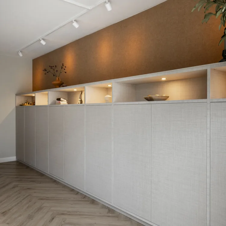 Ja, je kunt draaideurkasten ook prima gebruiken als inbouwkasten. Ze kunnen helemaal op maat worden gemaakt om perfect in een nis of ingebouwde ruimte te passen, zodat je een mooie, geïntegreerde uitstraling krijgt.