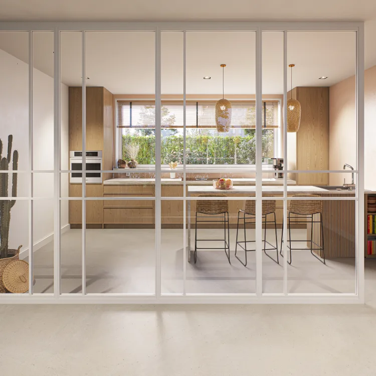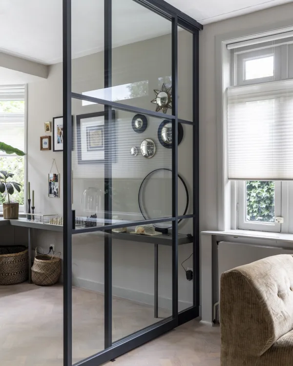 Wil je een grote ruimte opsplitsen? Of twee kamers van elkaar scheiden zonder er echt een gemetselde muur tussen te zetten? Dan is de scheidingsmuur een erg fraaie oplossing. Kies uit een scheidingsmuur met stoer zwart of subtiel wit frame voor de perfecte match met je interieur. Zo blijft het open karakter van je woning bestaan.