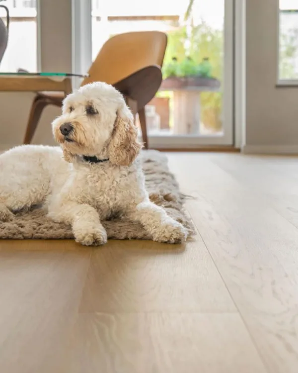 Plaats viltjes onder meubels en gebruik deurmatten bij ingangen om zand en vuil buiten te houden. Dit helpt om krassen en slijtage te minimaliseren. En hoewel fineerparket minder onderhoud vergt dan massief hout, is het toch aan te raden om de vloer af en toe te behandelen met een speciale polish of olie om de toplaag te beschermen en de kleur en glans te behouden. Vraag ernaar in onze toonzaal.