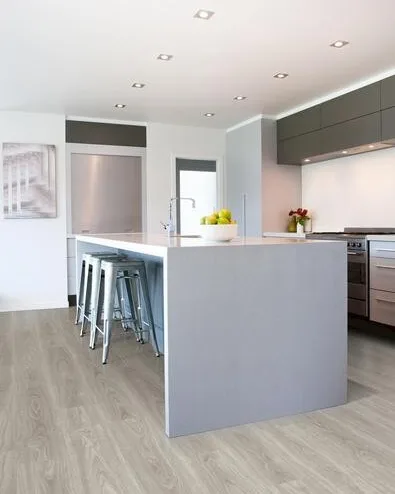 Boven op het feit dat clickvinyl heel sterk, krasbestendig en niet vlekgevoelig is, is het ook erg waterbestendig. En daarmee uitermate geschikt voor vochtige ruimtes als een keuken of een badkamer. Rondom een wasbak of vaatwasser waar ‘spatwater’ aanwezig is of waar weleens iets valt, is clickvinyl heel geschikt. We merken graag op dat clickvinyl op zijn best is in de badkamer wanneer er een douchebak aanwezig is. Wij raden niet aan om clickvinyl in de douchehoek te leggen.